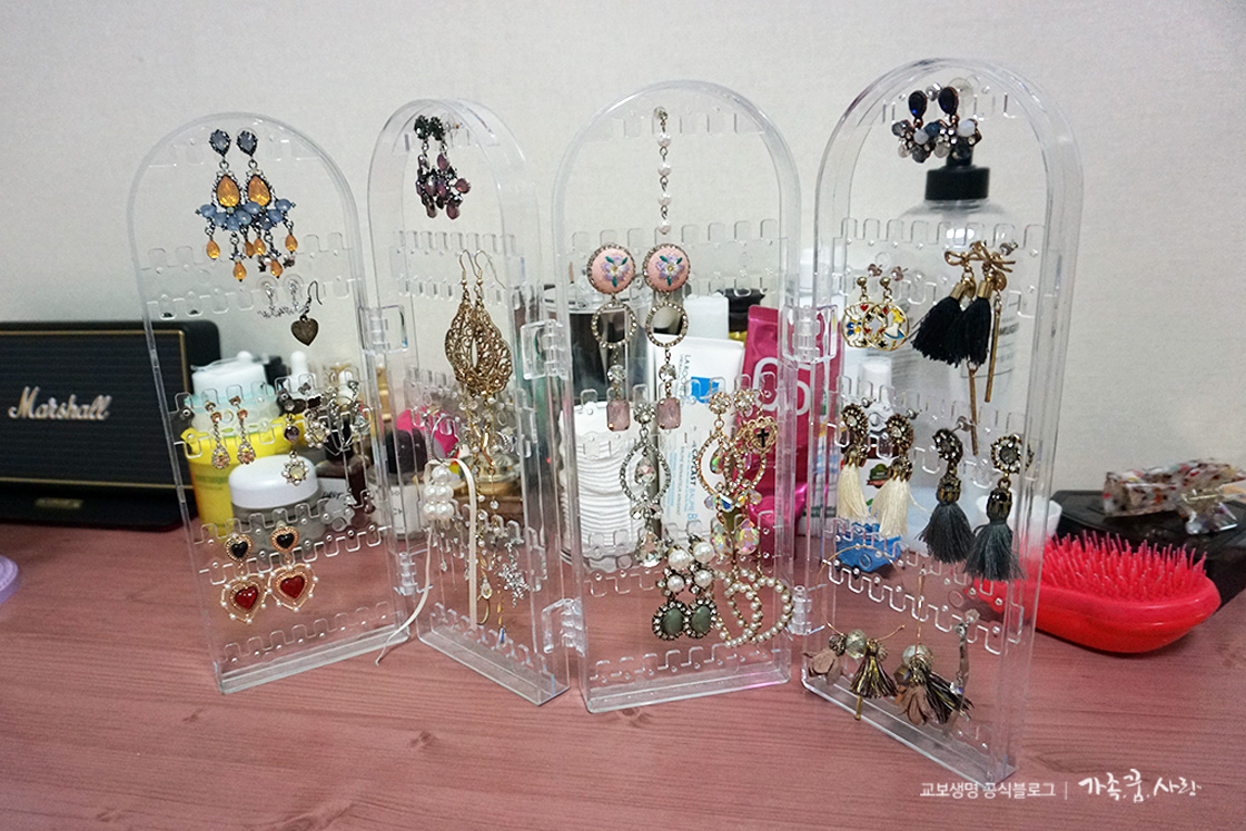 서랍이나 책장 위에 아무렇게나 놓여있는 잡동사니들은 안 그래도 좁은 자취방을 더 좁아 보이게 만듭니다. 안 쓰는 물건은 비우고, 갈 곳을 잃고 쌓여 있는 물건은 제자리를 찾아주세요. 필기구, 화장품, 액세서리는 종류대로 구분하여 적당한 수납함과 거치대에 차곡차곡 정리해줍니다. 자주 사용하지 않는 물건은 수납장이나 서랍 속에 보관하고 필요하다면 라벨지를 이용해 내용물을 구분해주세요. 책상이나 화장대, 싱크대 위에는 최소한의 물건만 올려두면 공간이 훨씬 넓고 깔끔해 보인답니다.