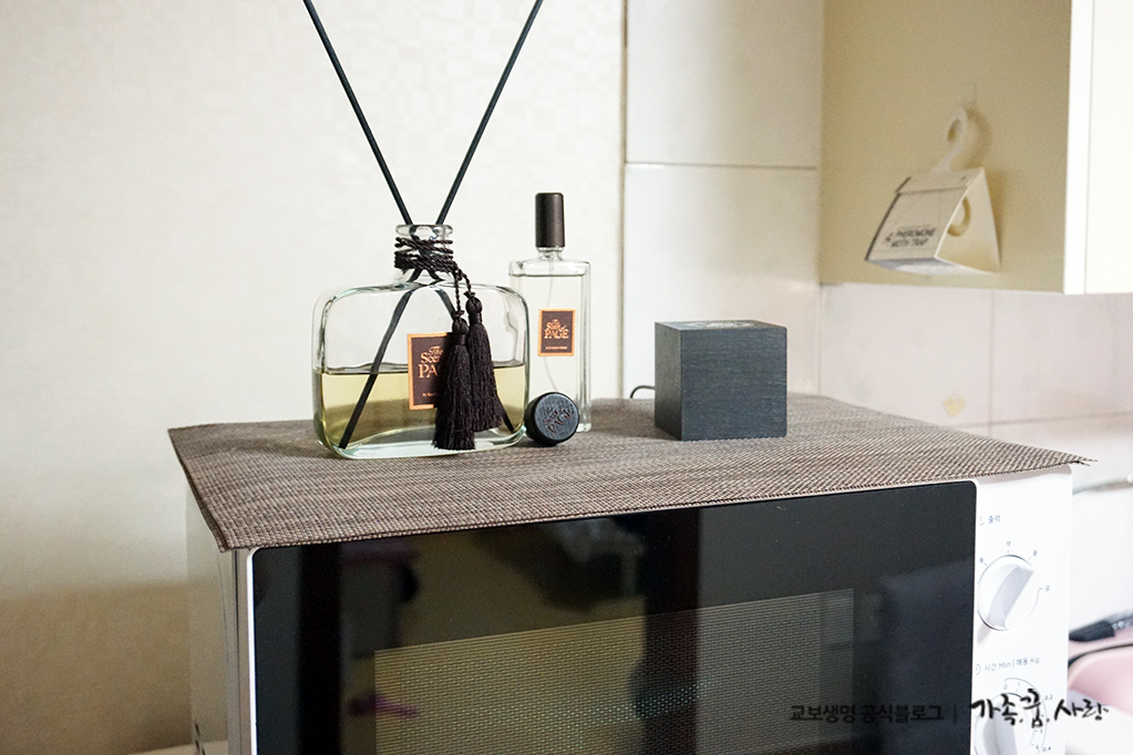 Tip 4. 토스터, 전자레인지 등 가전제품 위에 패브릭을 올려주면 소품 선반으로도 활용이 가능합니다.