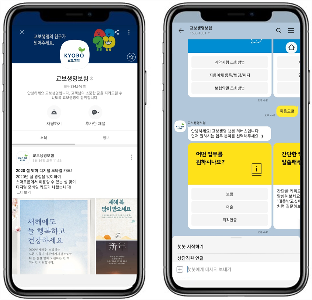 포스트 코로나 시대에 대비한 ‘디지털 교보 2020’의 일환으로, AI 기술을 한발 앞서 보험업무에 적용하고 언택트(비대면) 고객 서비스를 활성화하기 위한 것인데요, 보험업계에서 카카오엔터프라이즈와 손잡고 고객상담 챗봇을 구축한 것은 교보생명이 처음이에요.