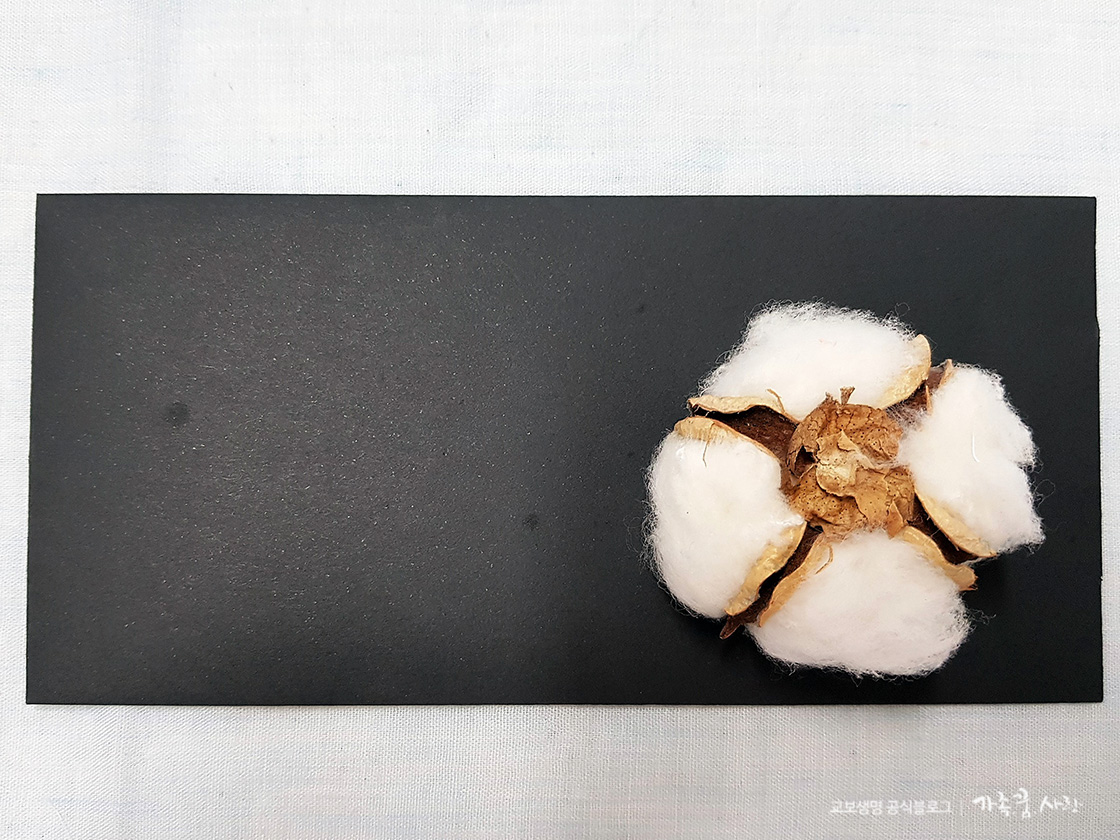 두 번째로 만들어 볼 플라워 카드는 동양화 느낌이 나는 자유 스타일입니다. 하얀 목화솜을 이용할 거라서 대비되는 검은 봉투를 준비했어요.