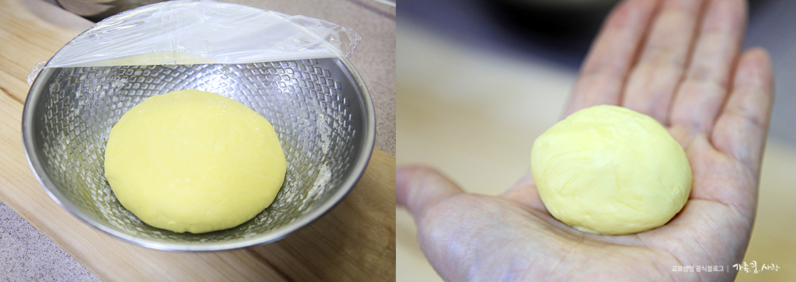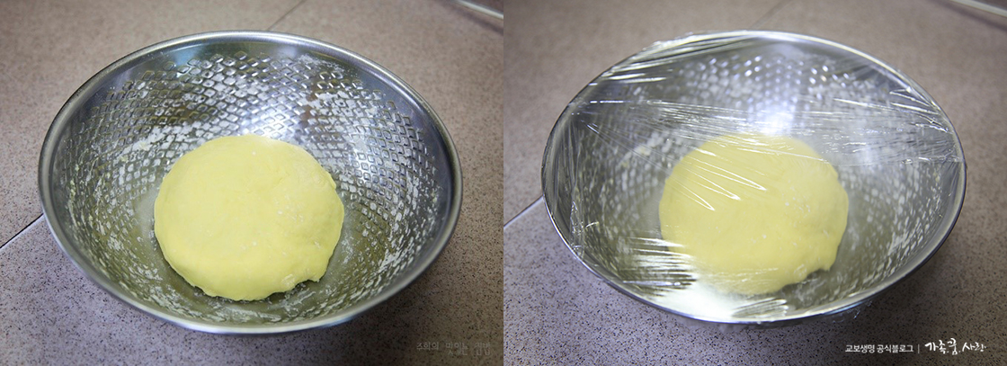 3. 손에 달라붙지 않고 한 덩어리가 되면서 탄력이 생기면 랩을 씌워 냉장고에서 30분 정도 숙성해 주세요.