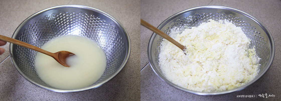 2. 믹스 가루를 넣고 골고루 뭉쳐주세요.