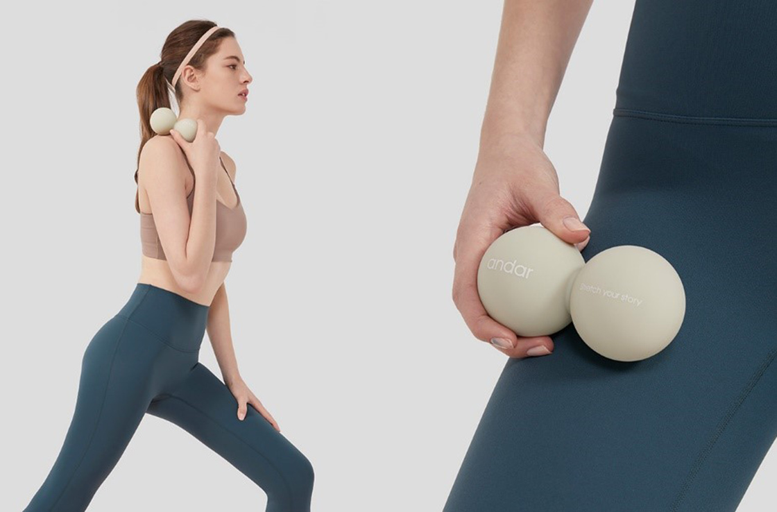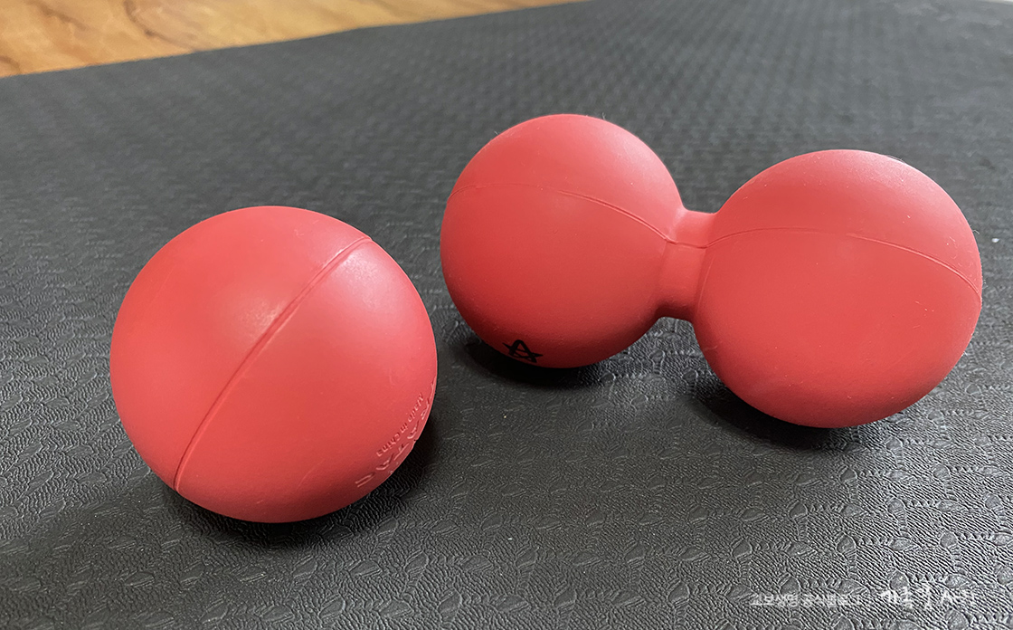 마사지 볼은 장난감 공처럼 생긴 마사지 도구입니다. 부드럽게 굴리는 방식으로 몸에 자극을 주어 마사지 효과를 얻을 수 있죠. 공 하나로 이루어진 싱글 마사지 볼과 두 개의 마사지 볼이 붙어 있는 더블 마사지 볼이 있습니다. 싱글 마사지 볼은 공간이나 방향에 제약 없이 신체 구석구석을 마사지할 수 있고, 더블 마사지 볼은 등, 허벅지 등 넓은 부위를 편하게 마사지할 수 있습니다.