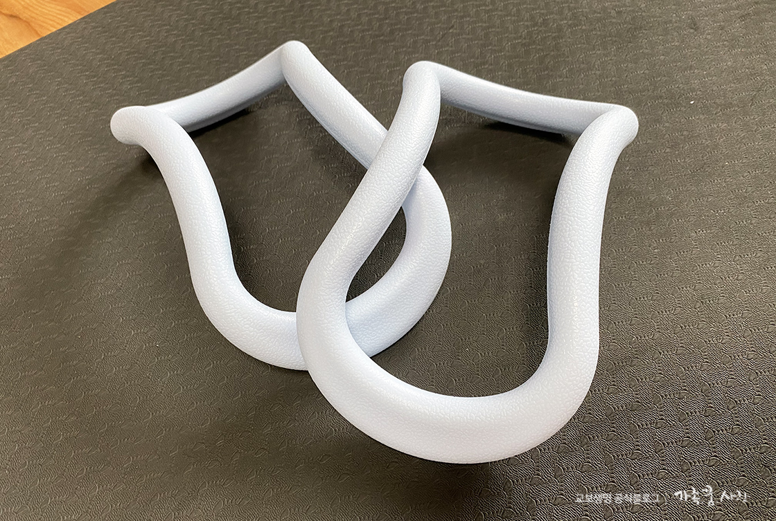 요가 링은 땅콩을 닮은 스트레칭 도구입니다. 종아리에 착용하여 자극을 주는 방식으로 종아리 근육을 풀어주고 붓기를 완화해줍니다. 따로 운동할 필요 없이 착용만으로도 효과를 느낄 수 있어서 오래 앉아서 일하는 사무직 종사자나 수험생에게 좋습니다. 착용만으로 심심하다면 요가 링을 잡고 몸에 자극을 주는 방법도 있습니다. 유선형으로 돼 있는 데다가 부드럽고 잡기 쉬운 요가 링은 온몸 스트레칭에도 사용할 수 있죠.