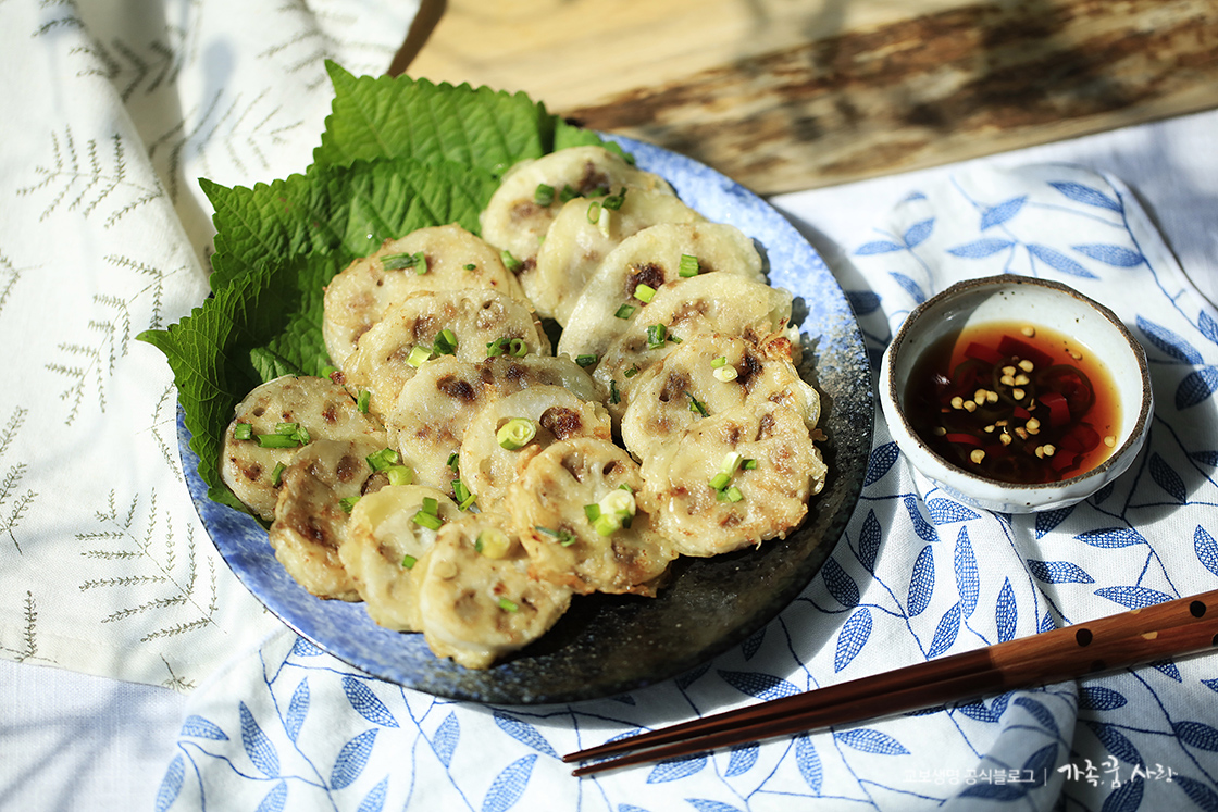 연근의 매력 중 하나가 아삭아삭한 식감입니다. 전이나 튀김으로 하면 아삭함이 배가 되죠. 그냥 부쳐먹어도 맛있는 연근에 소고기를 넣어 영양을 더해보세요. 아이들은 말할 것도 없고 어른 입맛에도 맞아 한 접시 부치면 금세 없어져요.