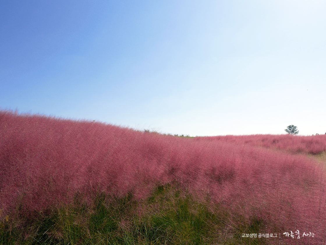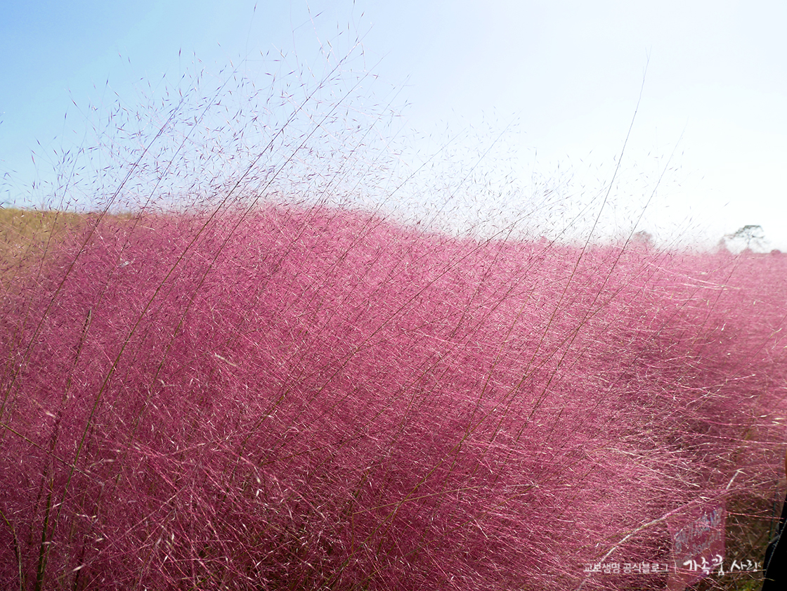 푸른 하늘 아래 가득 피어난 핑크뮬리를 직접 보니, 왜 가을을 대표하는 대세 식물이 된 이유를 알 것 같습니다. 바람에 살랑살랑 흔들리는 핑크뮬리를 보고 있으면 저절로 마음이 몽글몽글해지고 아름다운 동화 속에 들어온 기분이 듭니다.