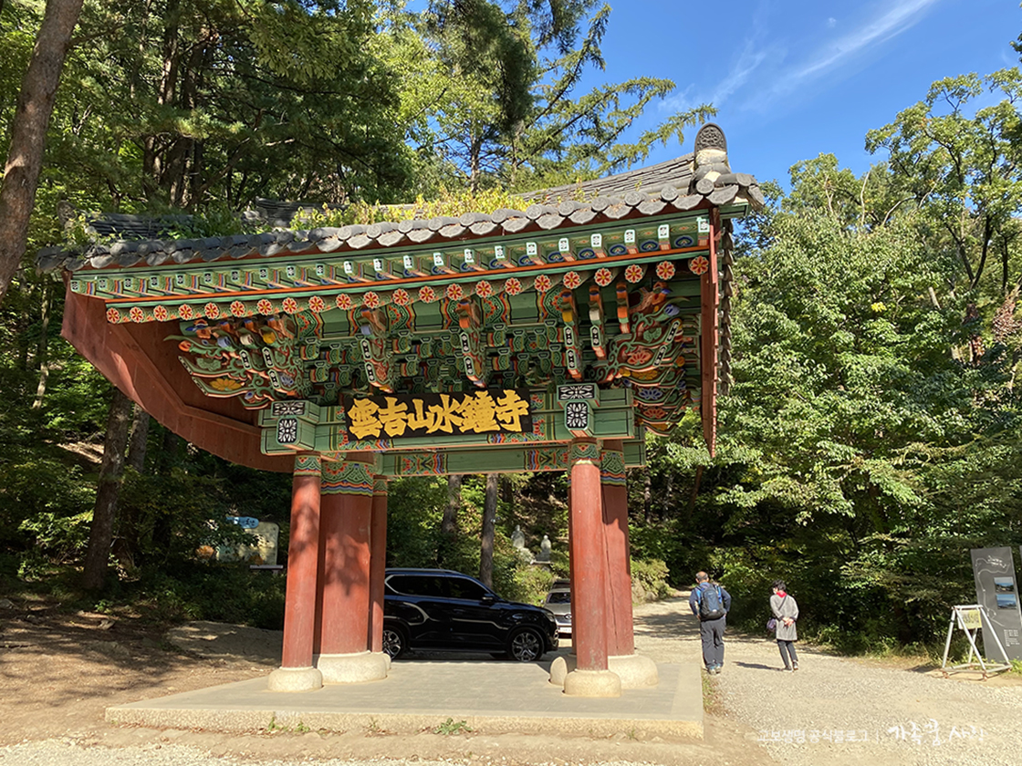 절이 가까워지면 사찰의 첫 번째 문인 일주문이 보입니다. 일주문 부근에 주자창이 있어서 걷기 힘든 분은 이곳까지 차로 올라갈 수 있습니다. 일주문을 통과해 오르막길을 조금 더 걷다 보면 계단이 나옵니다. 이 계단의 끝에 수종사가 있습니다.