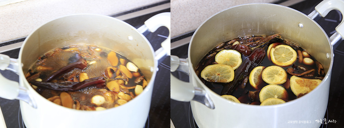 2. 냄비에 준비된 재료(레몬 제외)를 모두 넣고 끓이면 됩니다.
