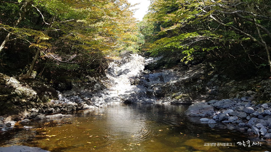 이 길에는 ‘절로 가는 길’이라는 리본 안내가 곳곳에 있어, 길을 헤매지 않고 쉽게 따라갈 수 있습니다. 예전부터 하원수로길 주변에는 사찰이 많아서 스님들이 이 길을 많이 이용했다고 해요. 그래서 전에는 하원수로길을 ‘중길’이라고 부르기도 했답니다. 아래로 내려올수록 고운 단풍잎은 점점 옅어지고, 푸른 나뭇잎이 더 많아집니다.