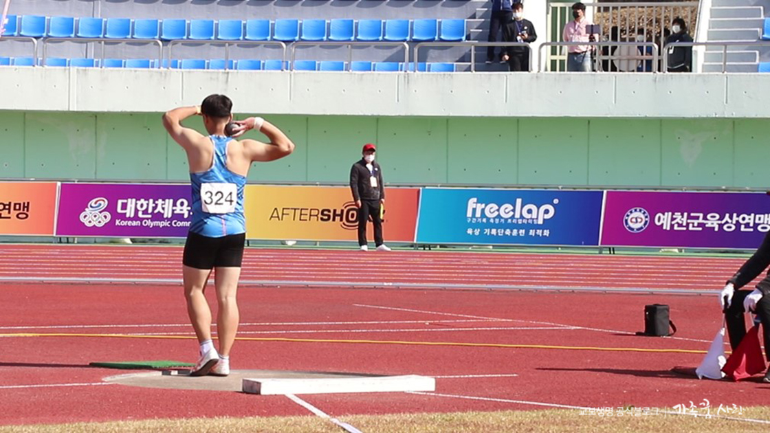 올해 목표인 19m는 아쉽게 넘기지 못했지만 제48회 KBS배 전국육상경기대회에서 18.33m 기록을 세웠고, 더 열심히 해서 올해 안에 목표를 달성해야죠. 그리고 3학년 졸업 전까지 23m를 넘는 것을 두 번째 목표로 세웠고요.