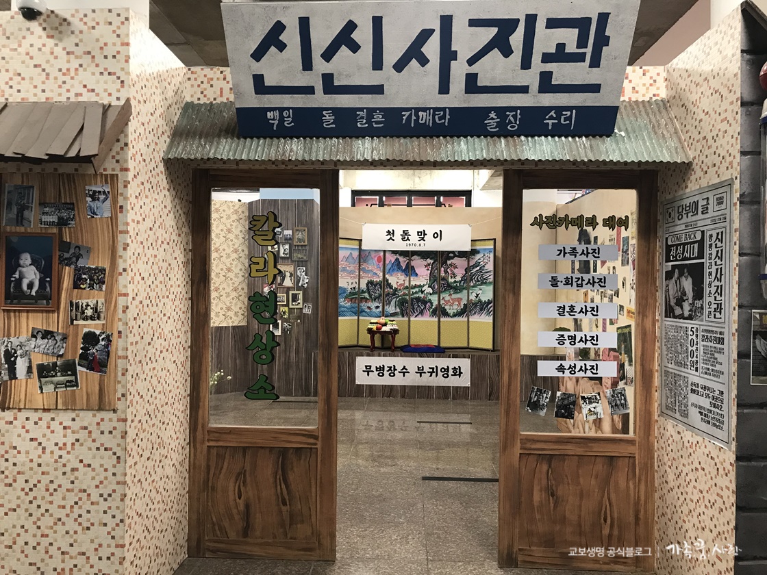 추억하면 사진관 또한 빼놓을 수 없죠. 핸드폰이 없던 시절, 중요한 행사가 있으면 사진관에 가서 흑백사진을 찍고는 했는데요. 사진관 들어가면 당시 활동했던 연예인들의 사진과 전국 우량아 선발대회 사진, 결혼식 세트를 보실 수 있습니다.
