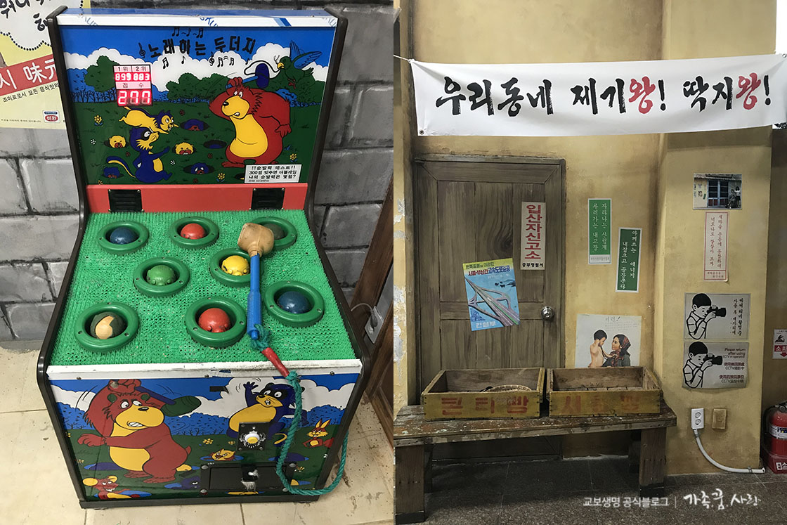 박물관 곳곳에는 추억의 게임도 즐길 수 있습니다. 두더지 잡기부터 옛날 오락기, 제기차기까지 체험할 수 있습니다. 딱지 하나만 있어도 동네 친구와 함께 하염없이 놀던 그 시절, 가끔은 그립지 않나요?