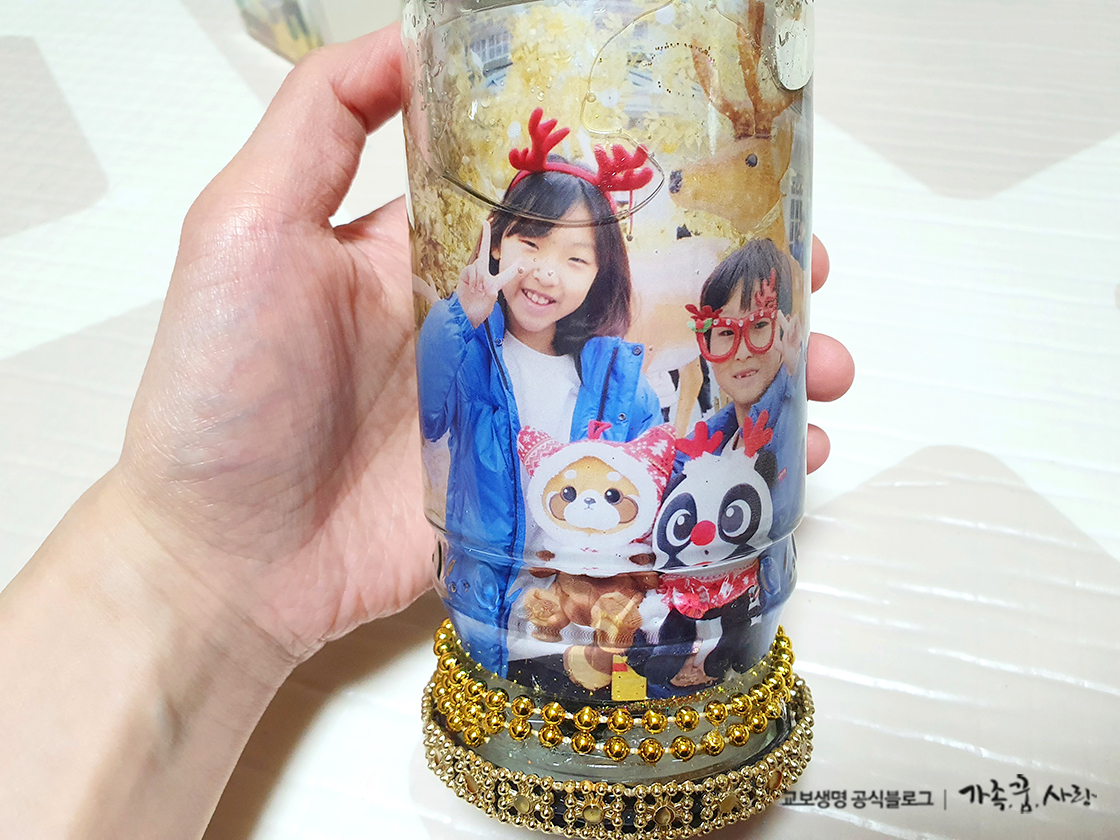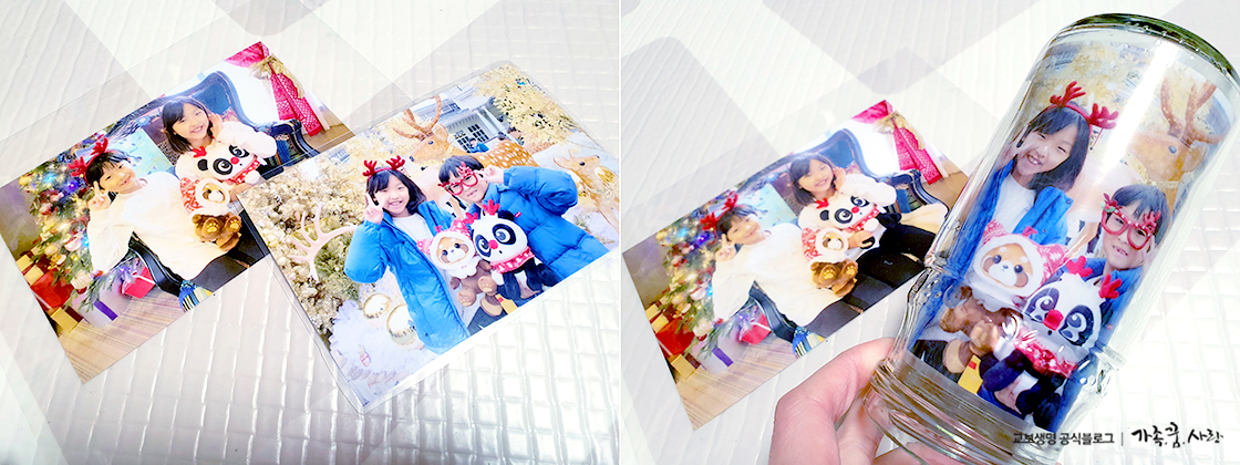 한쪽 면은 이렇게 아이들의 사진이 보이는 세상 어디에도 없는 하나뿐인 스노우글로브입니다.