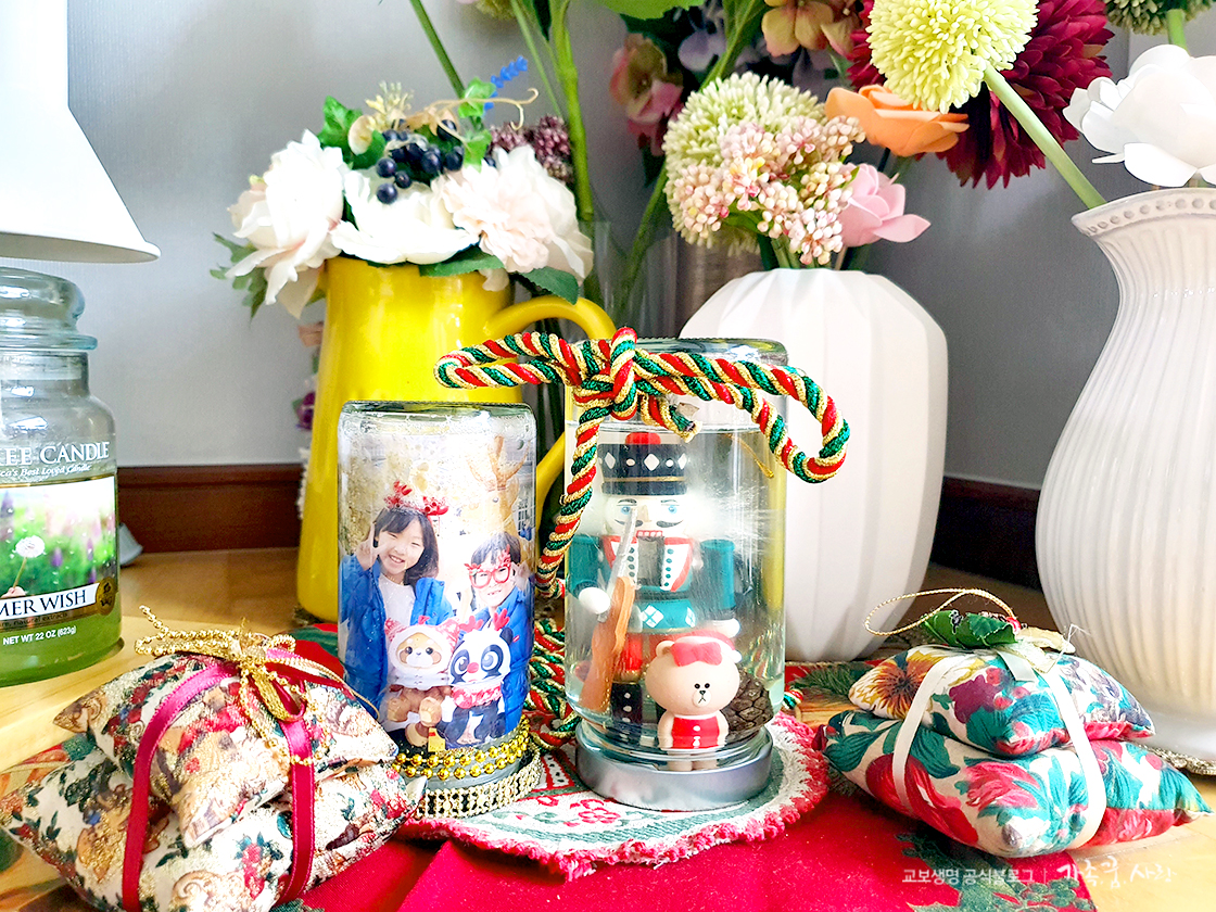 시중에 파는 스노우글로브는 작은 것들도 몇 천 원씩 하는데다가 쓰레기만 늘어나는 것 같아 조금 부담스러운데, 이렇게 집 안 소품으로 만들면 아이들과 즐거운 추억도 쌓을 수 있고 재미도 있죠. 집콕 놀이로도 더할 나위 없이 좋은 소재입니다. 보기만 해도 설레고 기분 좋아지는 크리스마스 스노우글로브. 인테리어 소품으로 활용하거나, 예쁜 상자에 넣어 가족, 지인들에게 선물해도 참 좋을 것 같아요.