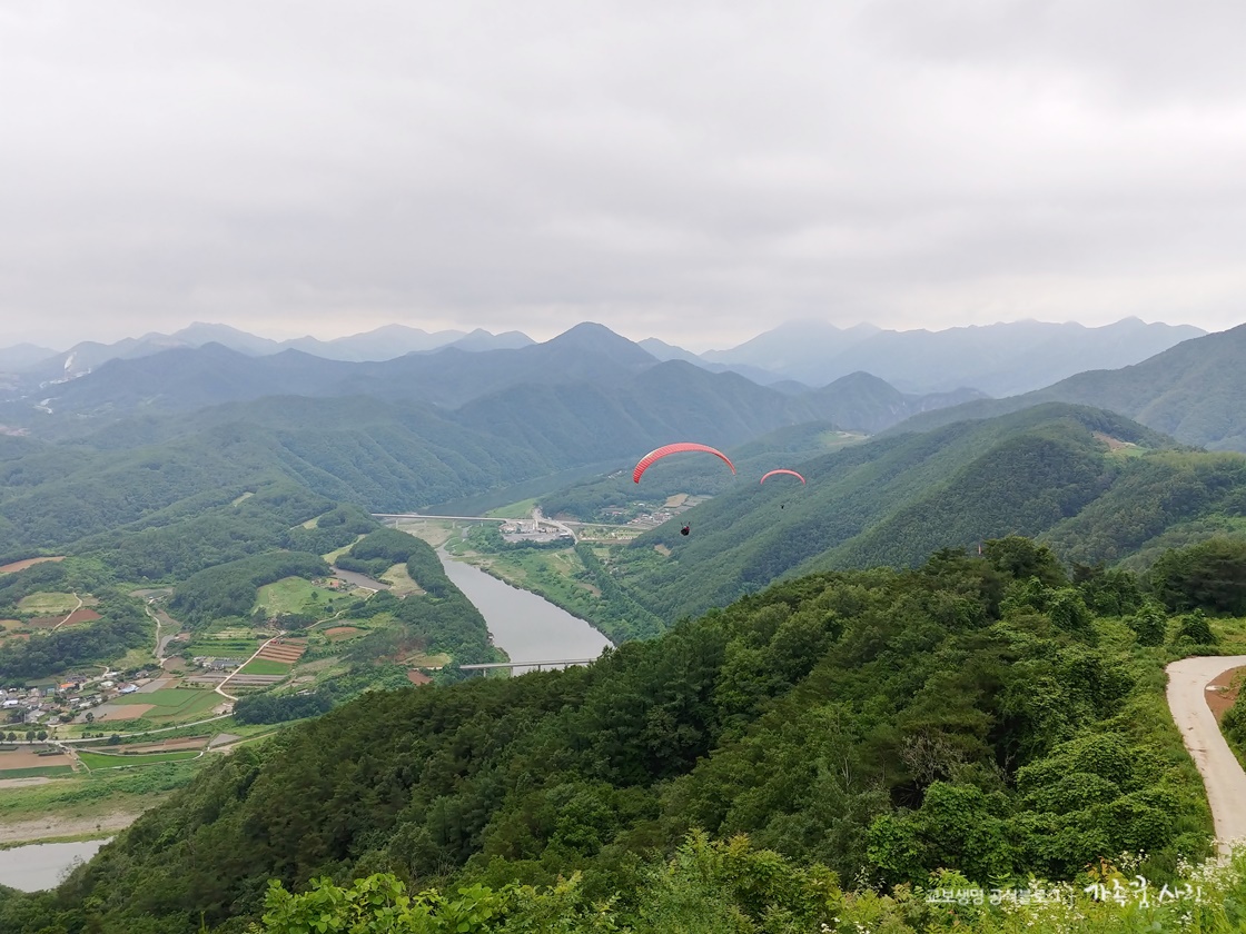 이 곳이 바로 패러글라이딩의 출발점인데요, 패러를 잡고 낭떠러지 끝까지 달려 낙하하면 하늘 높이 날아갑니다. 약 10분정도 활공하는 데 일반코스, 스페셜코스, VIP코스, 반려견과 함께 타는 코스 등 다양하게 선택할 수 있습니다. 가격은 8만원~12만원으로 다이나믹 비행을 포함하는지, 영상촬영을 하는지, 오랜 시간 높이 비행을 할 것인지에 따라 조금씩 가격이 다릅니다.