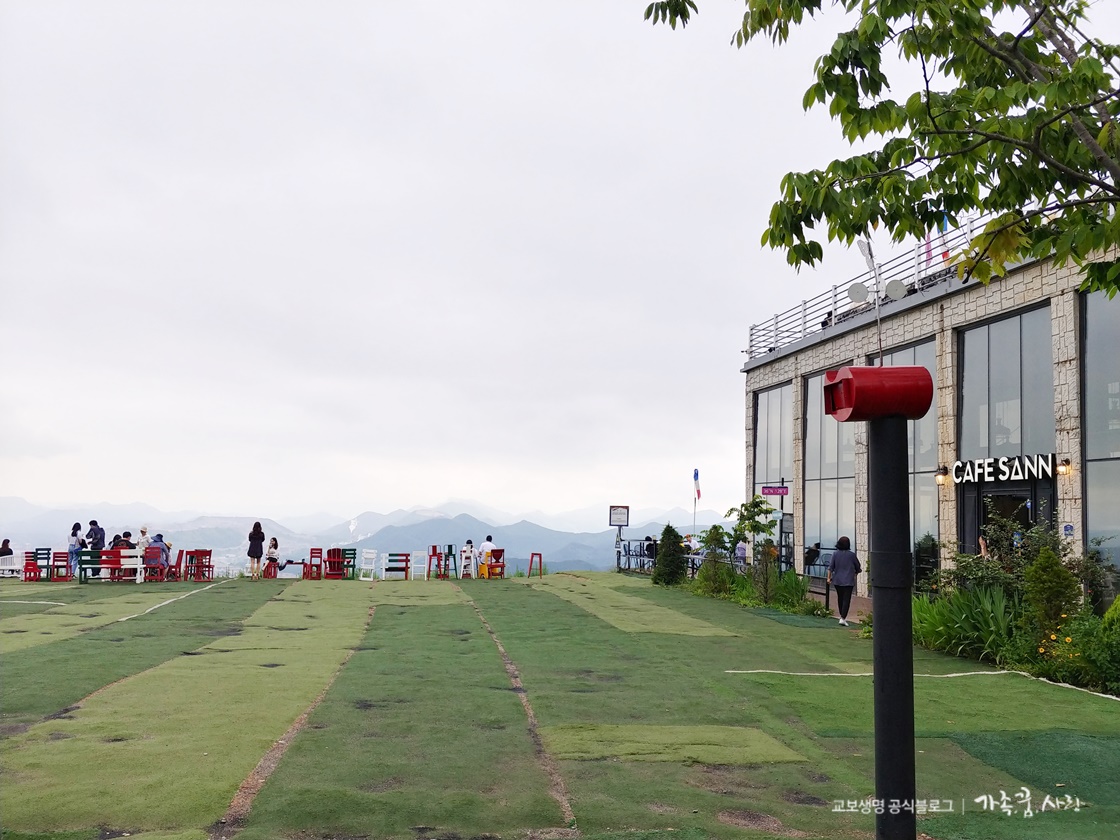 카페 산은 단양에 있는 하늘과 맞닿은 산 꼭대기에 위치해있는데요. 오전 9시~10시에는 발아래 운해가 끝없이 펼쳐지는 아름다운 광경을 볼 수 있어요. 산 꼭대기에 위치해있기 때문에 오전 9:30에 오픈해 저녁 19:30에 클로징 하는 다른 카페들보다 조금 일찍 문을 열고 닫는답니다. 주차는 무려 170대나 가능하기 때문에 차로 이동하는 것이 가장 편한데요. 사실상 산꼭대기에 있다 보니 대부분 자차로 방문하시더라고요.