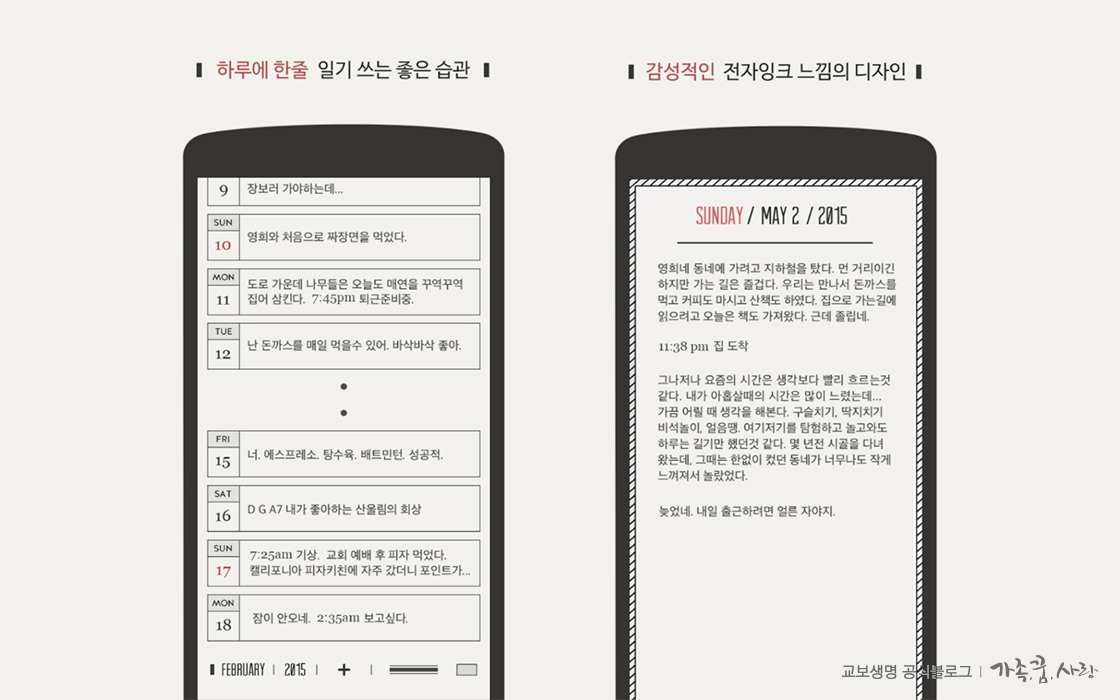 잠들기 전 침대에 누워서 혹은 지하철에서 이동하면서 잠깐 생각날 때마다 편하게 쓰고 지울 수 있다면 일기쓰기는 어떨까요? 스마트폰으로 간편하고 예쁘게 일상을 기록하고 이모티콘으로 꾸미기는 물론 취향따라 ‘다꾸’(다이어리 꾸미기)할 수 있는 저렴하지만 알찬 일기 어플을 소개합니다.