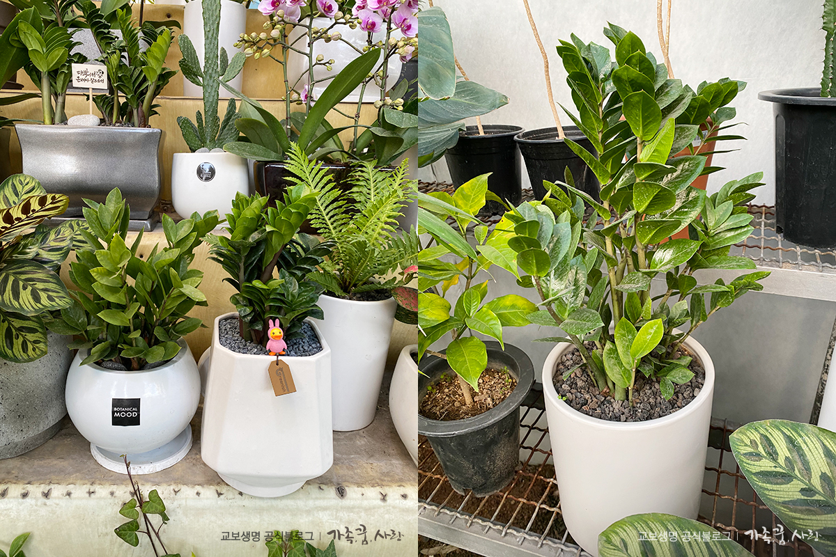 두 식물 모두 비싸지 않은데다가 공기정화 기능이 있어 선물용은 물론 인테리어용으로도 많이 찾습니다.