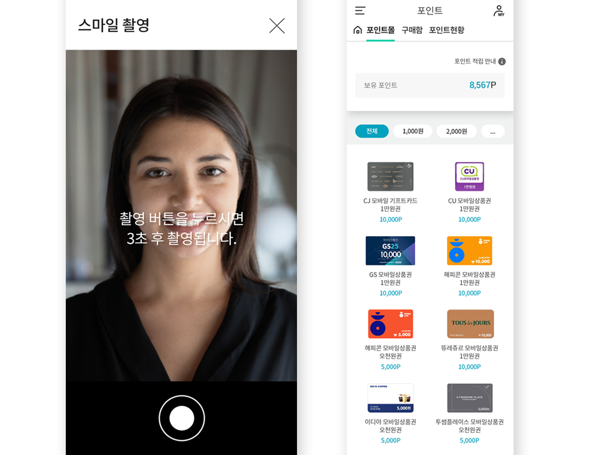 코로나 블루에 맞서 해피 바이러스를 전파하는 이색적인 기능도 눈에 띈다. 웃는 얼굴로 사진을 찍는 ‘스마일 카메라’를 이용하면, 사진을 기준으로 스마일 지수를 측정해준다. 활짝 웃을 수록 스마일 지수가 올라가며, 이에 맞춰 Kare 내 포인트몰에서 사용 가능한 포인트를 제공한다. 크고 밝게 웃을수록 더 많은 포인트가 제공되는 셈이다. 지금 바로 스마일 카메라 앞에서 활짝 웃으며 코로나 블루를 날려보는 건 어떨까?