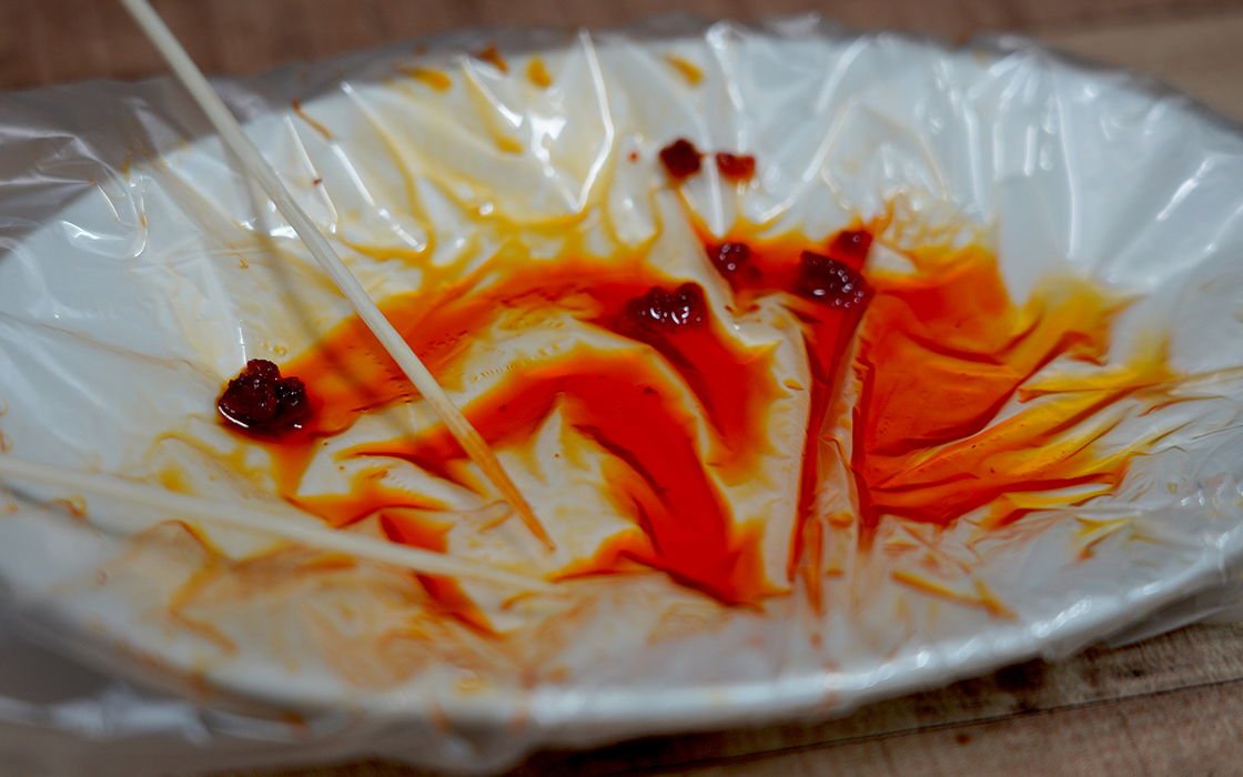 매운맛, 안매운맛 그리고 섞어서 모두 가능합니다. 기름 떡볶이 입문자라면 밍숭맹숭하게 느껴질 거예요. 매운맛도 색깔만 빨갛지 전혀 맵지 않거든요. 신선한 고춧가루를 사용해 묵은내가 전혀 나지 않고 고추기름의 톡 쏘는 향이 일품이에요. 계속 먹다 보면 떡의 달근한 맛과 기름의 고소함까지 은은하게 입안을 맴돌아 서서히 중독될 겁니다. 기름 떡볶이 먹은 다음 날은 다시 이 떡볶이가 생각난다니까요~