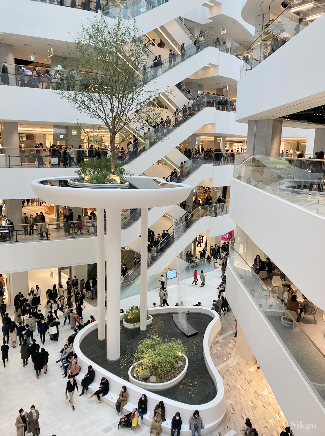 가족 단위 나들이는 물론 데이트 코스로 요즘 가장 핫플레이스 중에 이곳을 빼놓을 수 없다. 더 현대 서울은 모든 층에 적용한 파격적인 디자인 조경으로 지금까지 백화점이 선보인 인테리어와 차원이 다르다. 천장은 전면 유리로 마감돼 있고, 건물 구조는 가운데가 뻥 뚫린 보이드(void) 형태라 1층에서도 햇빛을 느낄 수 있다.