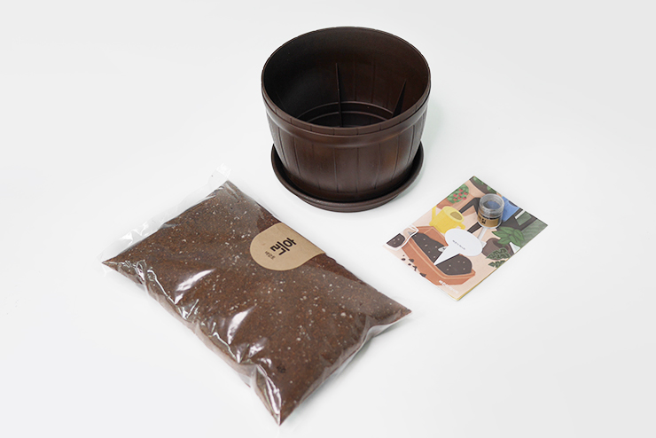 키트구성 | 가든박스(화분), 물받침대, 배양토, 네임태그, 씨앗, 가이드