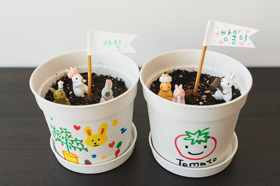 아이들과 함께 직접 화분에 흙을 담고 씨앗을 심으면 아이도 자연스럽게 관심을 가지게 되고 자꾸만 바라보게 된다. 하루하루 조금씩 변해가는 모습을 바라보는 것만으로도 즐거운 ‘반려식물’이 되는 것. 여기에 화분까지 꾸며 본다면? 홈파밍과 즐거운 미술놀이까지 함께 할 수 있다. 플랜트.비의 홈가드닝 키트는 아이들과 함께 색연필이나 크레파스를 활용해 씨드볼 깃발이나 화분에 직접 이름을 쓰거나 그림을 그려서 세상에 하나뿐인 화분으로 꾸밀 수 있다.
