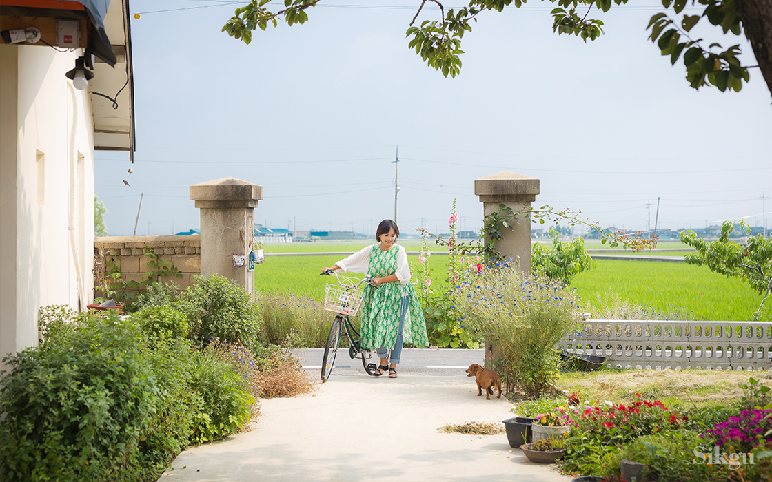 그러다 유튜브로 이 집을 알게 된 거예요. 제가 원래 구옥을 좋아했거든요. 오래된 것이 가진 시간의 흔적을 좋아해요. 그렇게 알고리즘이 소개한 이 집이 마음에 들어서 친구와 여행 삼아 무작정 집 구경을 왔어요. 그때 신기하게 김제 톨게이트를 통과해서 이 집까지 진입하는 길이 너무 좋았어요. 확 트여 있는 평야의 풍경과 공간감은 처음 느껴봤거든요. 막 봄이 시작될 때쯤이라 풍경도 마음도 몽글몽글했던 거 같아요. 그렇게 도착해서 집을 구경했는데 친구가 동네 어르신들이 너무 좋은 것 같다고, 이 집을 사라고 했어요. 제가 뭐 살 때 항상 말리는 친구가 인정해주니까 사야겠더라고요. 그렇게 그날 바로 가계약을 했어요.