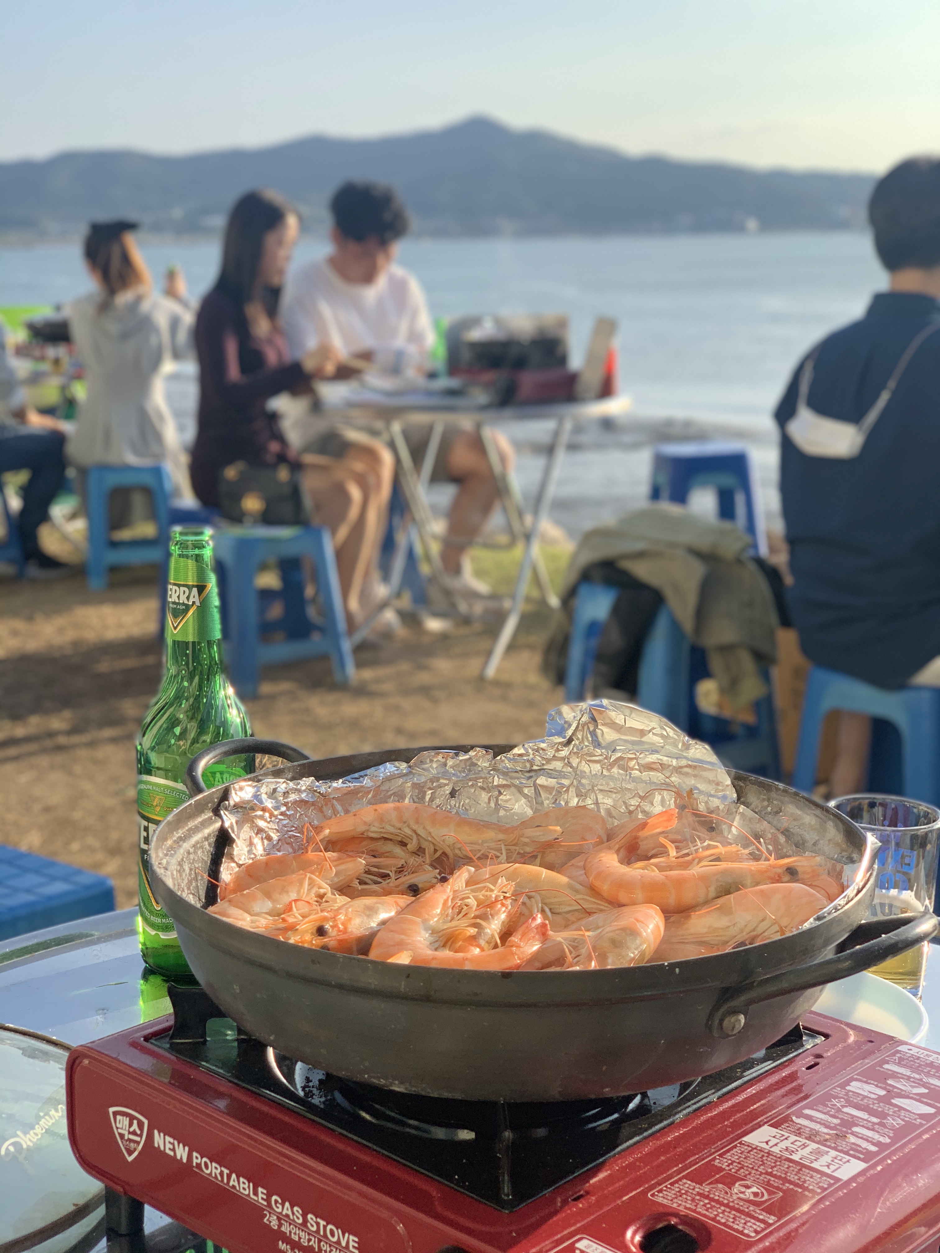 강화도에 있는 해운정양식장은 야외에서 바다를 안주 삼아 대하를 먹을 수 있는 뷰 맛집이라 대하 철만 되면 문전성시를 이룬다. 바다를 볼 수 있는 야외 천막 자리와 안쪽 실내 자리가 있는데 야외든 실내든 테이블 차지하는 것 자체가 경쟁이니 한 박자 빠른 타이밍으로 방문하는 걸 추천한다. 모든 게 셀프라 정신이 조금 없지만 펄떡이는 싱싱한 대하를 만날 수 있고, 서해 일몰까지 즐길 수 있어 대하 맛은 그야말로 낭만적이다. 대하 머리만 볶아주는 버터구이 메뉴는 따로 없으니 버터를 챙겨가 셀프로 버터구이를 해 먹는 게 대하맛집 해운정양식장을 즐기는 꿀팁!