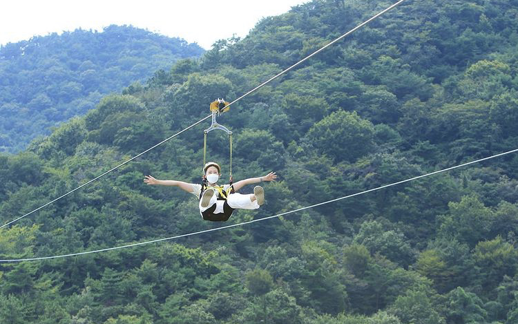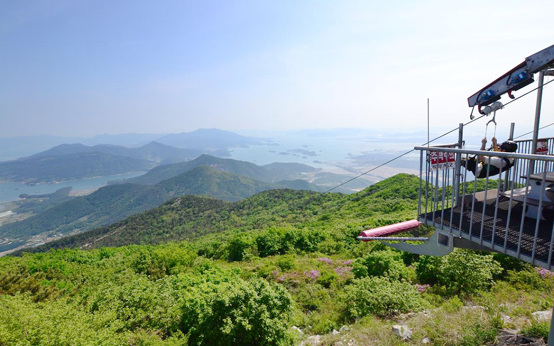 동남아 여행에서 경험할 수 있었던 집라인을 이제는 국내에서도 쉽게 만날 수 있게 되었다. 하동 알프스레포츠 집라인은 아시아 최장 길이인 3.168km로 남다른 길이와 경사각을 자랑한다. 해발 849m 금오산 정상에서 출발해 두 개의 환승지를 거쳐 목적지까지 도착하는 데 걸리는 시간은 5분 남짓. 최장 길이뿐만 아니라 초반의 급격한 경사도는 마치 하늘에서 뚝 떨어지는 것 같은 짜릿함을 선사한다. 발아래로 아찔하게, 눈앞으로 시원하게 펼쳐지는 금오산과 남해 바다의 풍경은 덤!