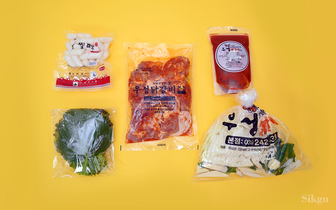 춘천의 명물 닭갈비. 2대째 이어져 오는 30년 전통 맛집 우성닭갈비도 택배로 받아볼 수 있다. 우성닭갈비는 너무 달지도 짜지도 않은 감칠맛 나는 양념이 특징. 닭갈비를 주문하면, 양념육과 함께 야채 세트, 떡, 고구마, 쌈 세트 등이 함께 배송된다. 고기를 구울 때는 덩어리째 살짝 먼저 익힌 후 양념과 야채를 넣고 볶아 먹으면 되는데 기름이나 물을 함께 넣으면 맛이 변질되니 절대 넣지 말자. 재료와 함께 동본 된 설명서에 자세하게 안내되어 있으니 참고할 것. 우동 사리와 떡은 추가 주문이 가능하다.