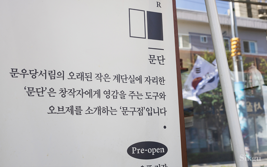 문우당은 편안한 공간을 지향하기 때문에 반대로 낯선 걸 시도하는 데 한계가 있었는데, 문단을 통해서 새로운 시도를 할 수 있었습니다. 문단이란 뜻은 '문우당 계단'이란 뜻이기도 하고 '문단에 오르다'라고 표현하는 그 문단이기도 해요. 거창하게 이야기하자면 창작하는 사람이 도구를 통해 문단에 오르는 경험이 되길 마음으로 만들었습니다.
