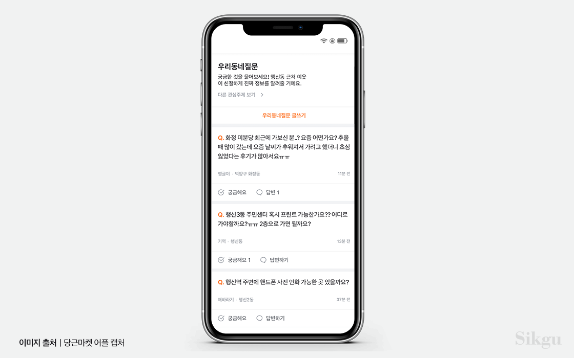 '여자 복싱 배울만한 곳 없을까요?', '아이 피부과 진료 잘 보는 곳 있나요?' 포털이나 SNS에 검색해도 광고밖에 보이지 않는다. 동네 이웃들의 리얼 정보가 절실하다. 이때 필요한 것이 바로 <우리동네질문> 게시판! 광고는 쏙 뺀 이웃들의 실제 후기가 가득하다. '주민센터 프린트 가능한가요?', '00식당 맛있나요?' 다른 곳에서는 물어볼 수 없는 사소한 질문도 이곳에서는 가능하다. 10대부터 60대까지 이용연령층도 다양해 생활 전반에 정보를 얻을 수 있는 것도 장점!