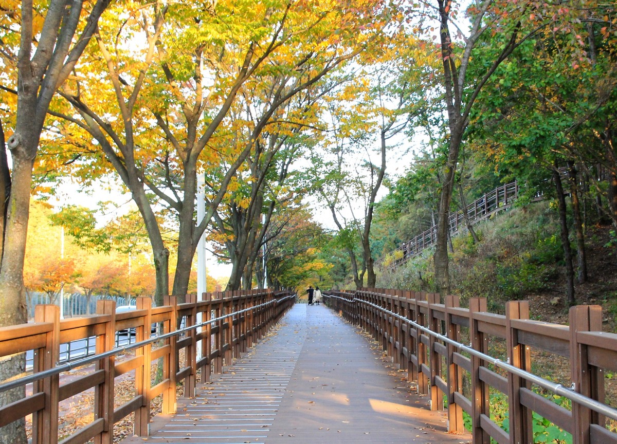 서울과 부천의 경계에 있는 지양산은 해발 125m의 낮은 산이다. 지양산 무장애순환길은 아담한 산 둘레를 따라 조성된 800m 남짓 되는 짧은 코스로 가볍게 걷기 좋다. 중간 중간 휴게공간과 피크닉 테이블이 마련되어 있어 소풍 기분을 내기에도 충분! 산책로 초입의 유아숲체험원에는 인디언 집, 낙엽 풀장, 하늘 보기 해먹 등 다양한 자연 시설과 체험 프로그램이 있어 아이와 함께 자연을 배우고 즐기기에도 좋다. 트레킹을 원한다면 국기봉을 지나 양천둘레길로 이어지는 코스도 추천한다.