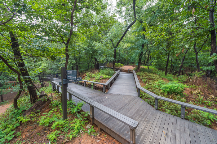 무장애길은 이름 그대로 장애물이 없는 길을 뜻한다. 가파른 산길에 폭 2m, 경사도 8% 미만의 완만한 목재 데크를 연결하여 만든 무장애길 산책로는 노약자, 어린이, 임산부, 휠체어 이용자 등 보행약자도 산을 편하고 쉽게 오를 수 있어 가족 나들이 장소로 추천한다. 걸음이 서툰 아이부터 몸이 불편한 어르신까지. 온 가족이 함께 걷기 좋은 전국 무장애 산책로 5곳을 소개한다.