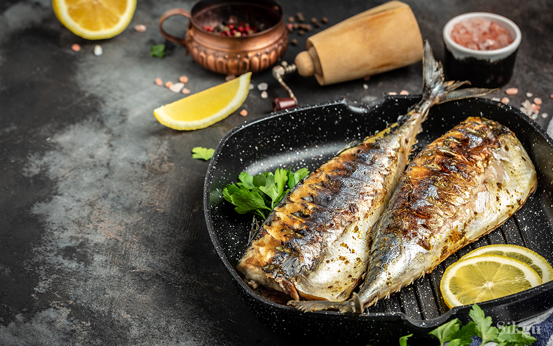 고등어, 연어, 멸치, 정어리, 참치와 같은 등 푸른 생선에는 오메가 3가 많은데, 이것이 혈액을 맑게 해주고 콜레스테롤과 혈압을 낮춰 주어서 고지혈증 예방 및 심혈관 질환 개선에 좋다. 그 밖에도 등 푸른 생선류에는 두뇌 건강, 눈 건강에 좋은 성분이 많고 염증을 줄여주는 효과가 있어서 관절염, 뇌졸중 예방에도 제격이다.