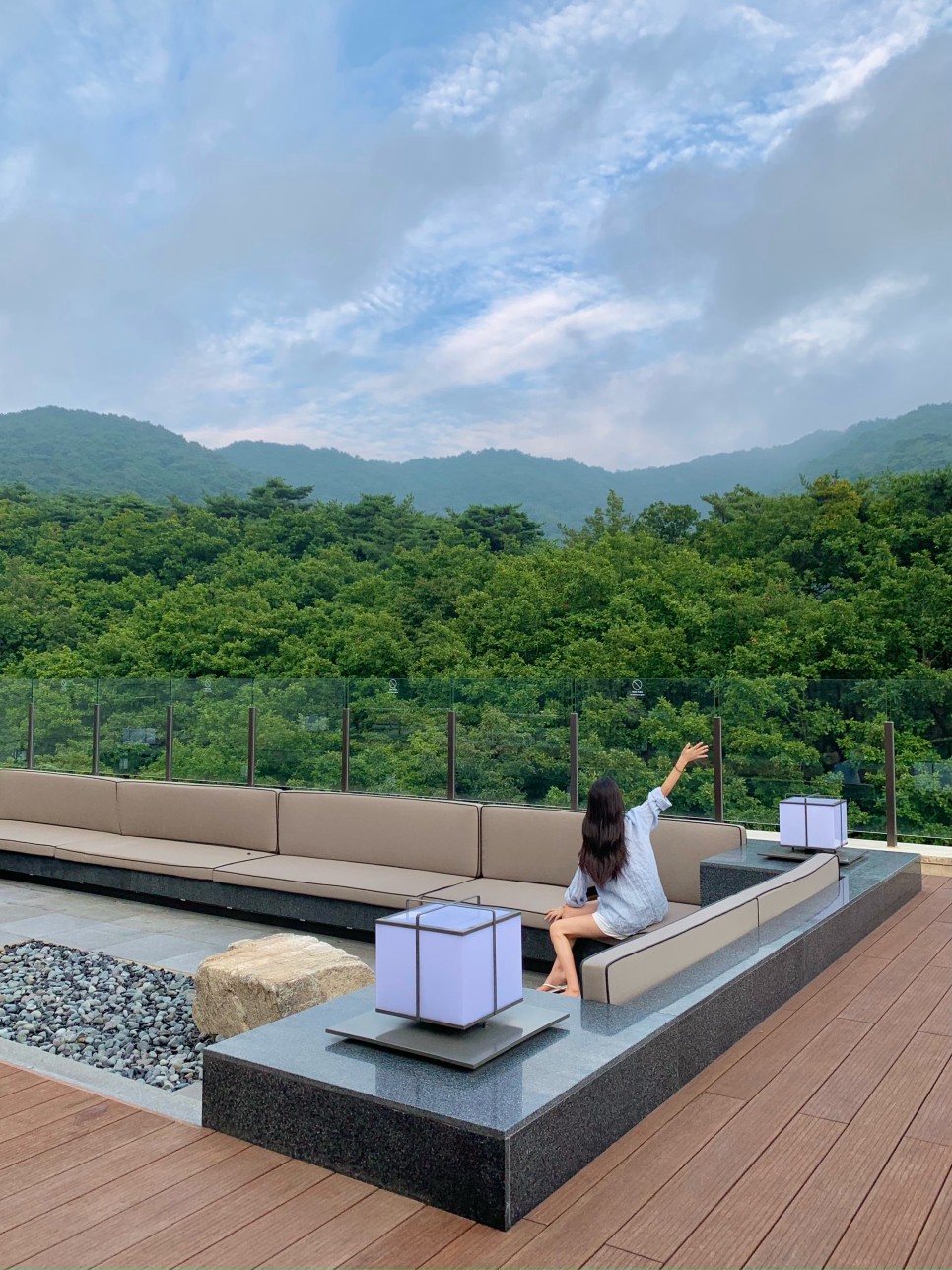 어마어마한 마운틴뷰를 자랑하는 제천 스파 호텔 레스트리 리솜. 호텔 최상층에는 야외 자쿠지와 옥상 정원이 있어 숲속 호캉스를 제대로 즐길 수 있다. 풀장만 한 사이즈의 자쿠지에서 수영도 할 수 있고, 예약제로 운영되기 때문에 코로나 위험 없이 넓은 테라스 공간을 단독으로 사용 가능하다.
