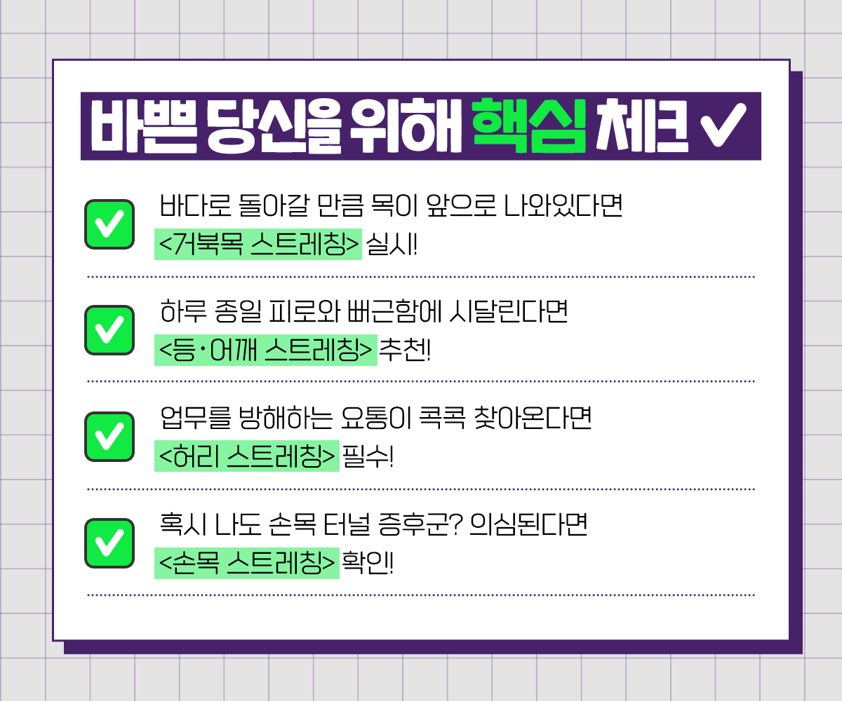 ✅업무를 방해하는 요통이 콕콕 찾아온다면 <허리 스트레칭> 필수!