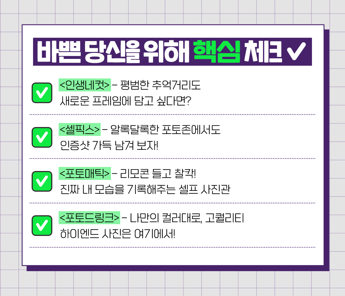 ✅<인생네컷> - 평범한 추억거리도 새로운 프레임에 담고 싶다면?