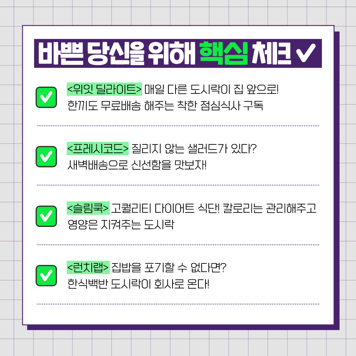 ✅<위잇 딜라이트> 매일 다른 도시락이 집 앞으로! 한끼도 무료배송 해주는 착한 점심식사 구독