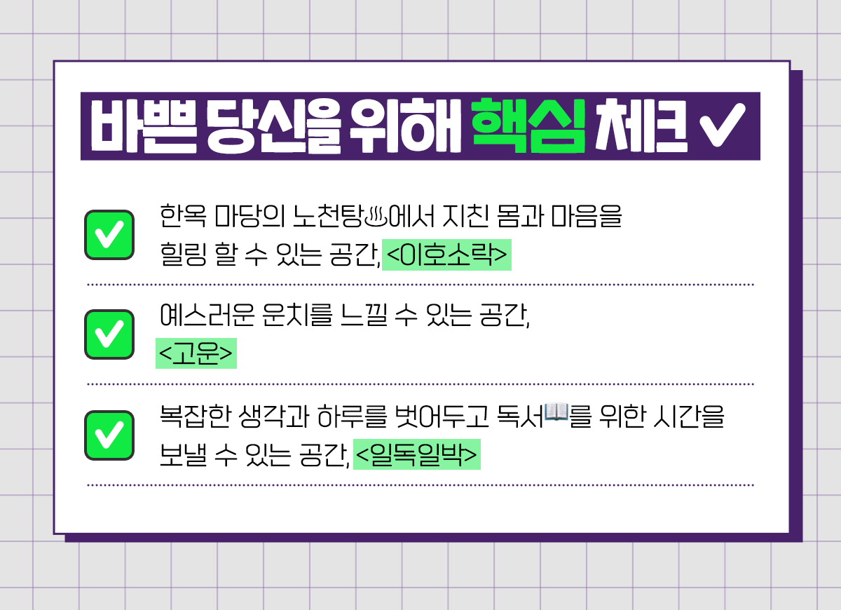 ✅한옥 마당의 노천탕♨에서 지친 몸과 마음을 힐링 할 수 있는 공간, <이호소락>