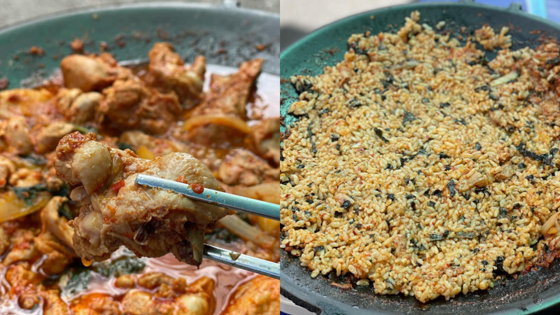 이제 상계역 쪽으로 하산해서 모두가 향한다는 그곳! ‘원조닭갈비’로 가보자. 이곳은 깻잎이 들어간 육계 물닭갈비를 파는데, 외관부터 마치 응답하라 느낌이 물씬 나는 정겨운 모습이야. 밑반찬 당연히 맛깔나고 가격도 저렴한 편이지. 국물이 넉넉한 물닭갈비를 먹다가 쫄면 사리를 추가하면 되고, 다 먹고 나서는 볶음밥까지 먹어주기!💯 이렇게 하면 등산 실버 코스도 클리어!