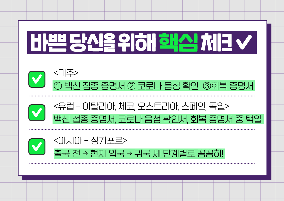 ✅<미주> ① 백신 접종 증명서 ② 코로나 음성 확인서 ③회복 증명서