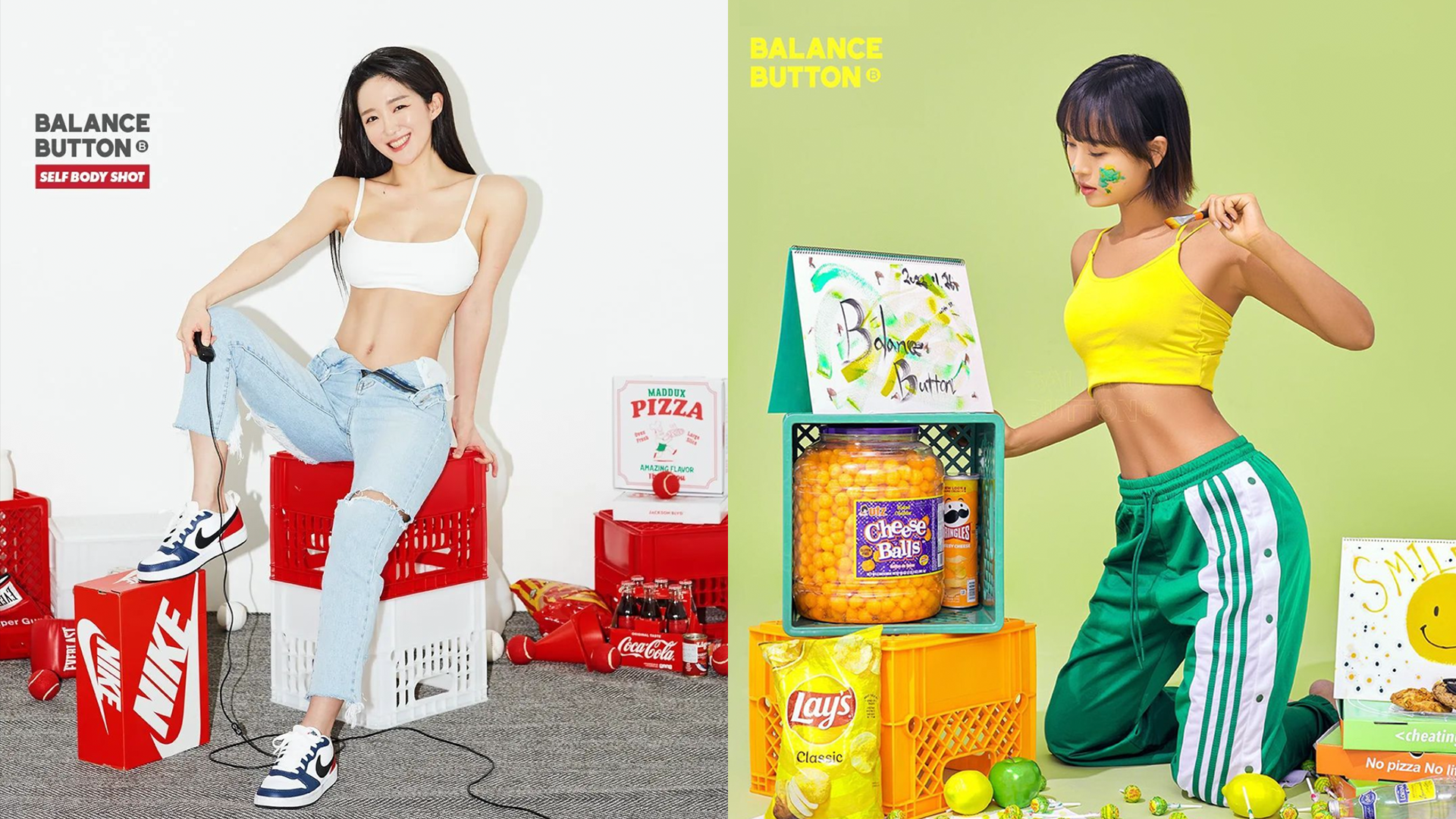 컬러감 확실! 소품도 화려한 바디 프로필은 여기! <밸런스 버튼>