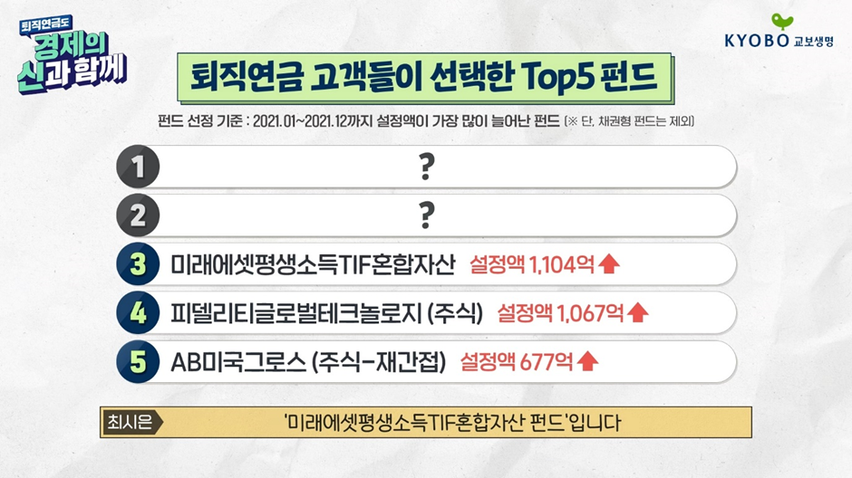 1~2위를 차지한 펀드는 무엇일까? <교보생명 퇴직연금> 유튜브에서 확인하자!