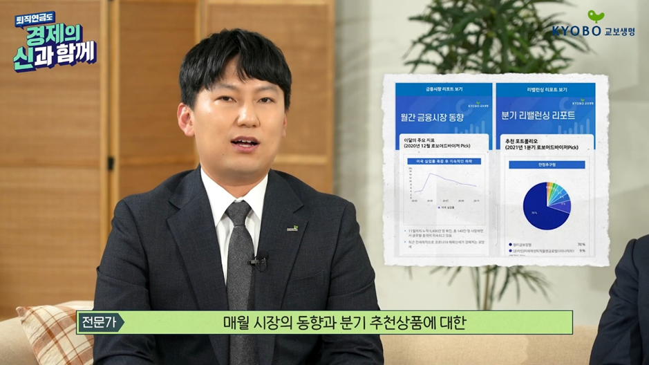 김종진 : 저희 교보생명은 교보 로보 어드바이저 서비스를 통해 매월 시장의 동향과 분기 추천 상품에 대한 리포트를 발송해 드리고 있습니다. 상품을 선택하기가 어렵다거나 자산 배분이 어려운 분들은 이러한 기능을 잘 활용해 보시면 좋을 것 같습니다.
