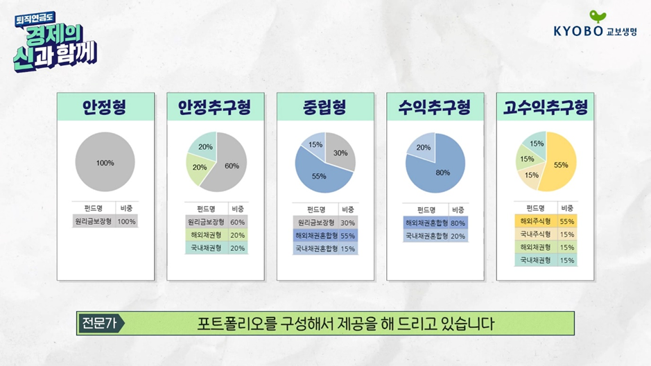 교하-! 친구들 주말 잘 지냈어~? 교봉이는 주말동안 지난주에 소개했던 김프로님의 퇴직연금 펀드 Top5 영상을 한번 더 보면서 펀드에 푹 빠져있었어! 펀드를 찾아보며 재테크 계획을 세워보니 희망도 생기고 부자가 될 것만 같은 기분이 들어서 좋더라고! 그래서 오늘은 조금 더 구체적으로 퇴직연금을 어떻게 배분해야 하는지 김프로님과 또 한번 알아보려고 해~!