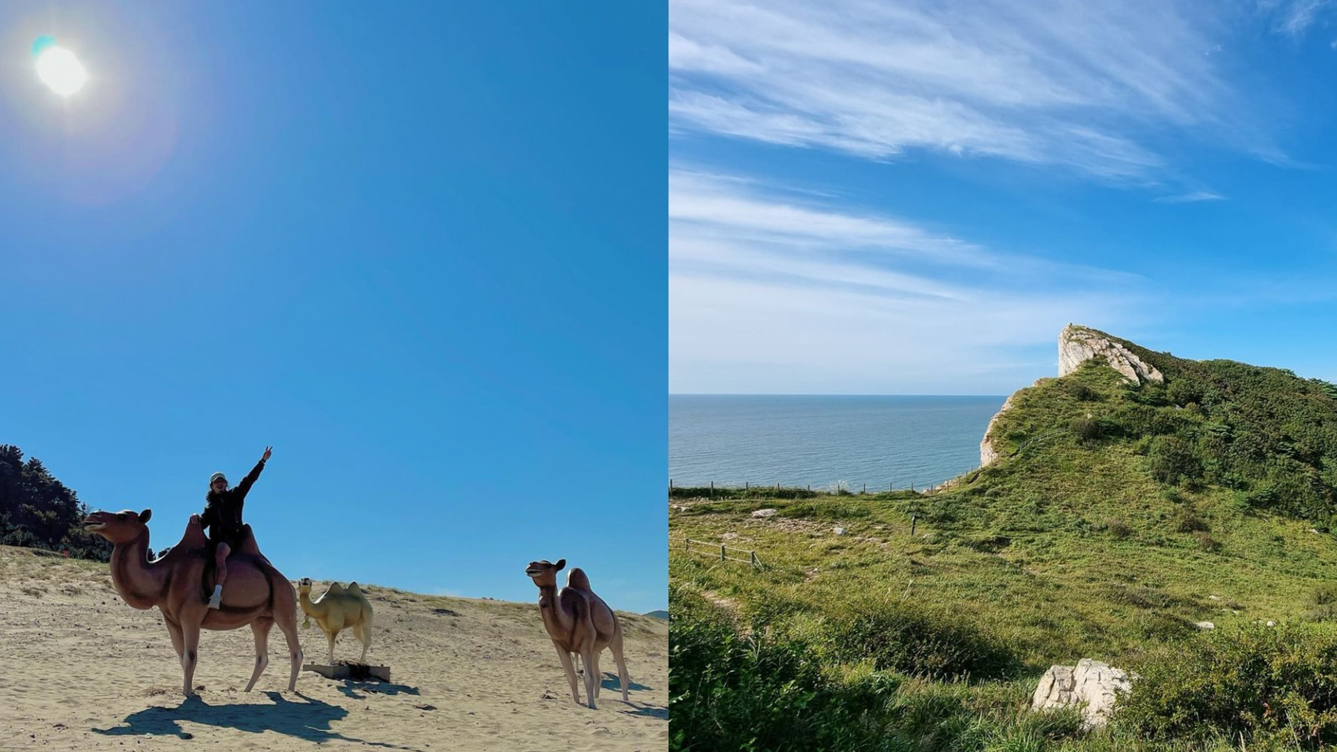 우리나라 섬에 이런 풍경이?!😲 대청도📍는 한국의 사하라 사막이라 불리는 해안사구와 깎아지른 절벽을 볼 수 있는 서풍받이가 유명한 섬 여행지야. 해안사구는 우리나라에서 유일하게 모래산🏜이 형성되는 곳인데 바람결에 따라 수시로 바뀌는 모래 표면을 관찰할 수 있대! 정말 신기하지?👀 그리고 높이 솟은 서풍받이는 서해바다를 배경으로 멋진 풍경을 자랑하고 있어. 만약 트레킹에 관심있는 친구들이라면 대청도의 삼각산부터 기름아가리까지 이어지는 서풍받이 트레킹🚶🏼♂️을 경험해봐도 좋을 거야! 4시간 이상 소요되는 8.4km 코스인데 서해 바다🌊를 만끽할 수 있는 최고의 여행이 될 것 같다! 서해에 위치한 대청도는 인천항에서 3시간 이상 배를 타고 들어가야 만날 수 있어.🛥 청정자연을 즐길 수 있는 대청도! 이번 여름 휴가로 어때? (참고로 사진 속 낙타는 실제 낙타가 아니라 조형물이야. 😅)