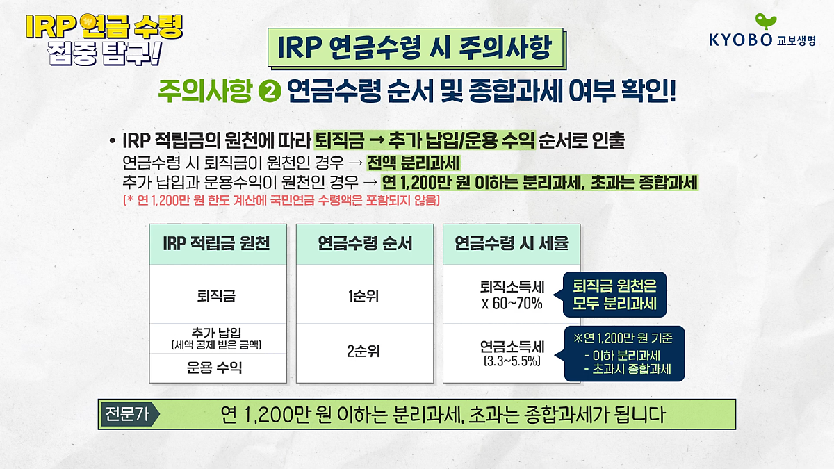 두 번째 주의 사항 "연금 수령 순서와 종합 과세 여부"