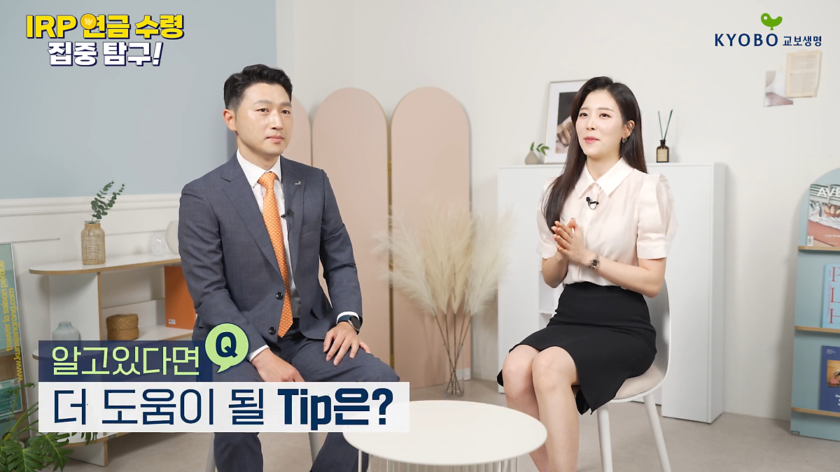 그래서! 오늘은 교봉이가 교보생명 고영현 과장님과 함께 교보생명 IRP 연금 수령 방식을 소개하려고 해. 고영현 과장님께서 마지막 꿀팁까지 다 알려줬다고 하니, 친구들 모두 놓치지 말고 꼭 알아두자!